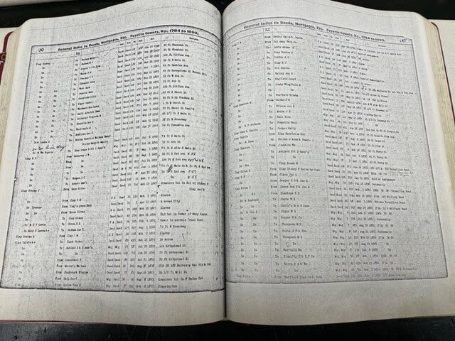 On May 23, 2022, this project kicked off by digitizing the first General Index Book to Deeds and Mortgages, and will continue until each page from all books identified as deeds, wills, burnt records, county court orders, historic Fayette Surveys, Declaration of Marriage Book, Marriage Colored Bonds, City Minute Books and other city records, the 1896—1910 Fayette County School Census Books, Guardianships, and their indexes are digitized. The Digitization Project is taking place on site at the Fayette County Clerk’s office.